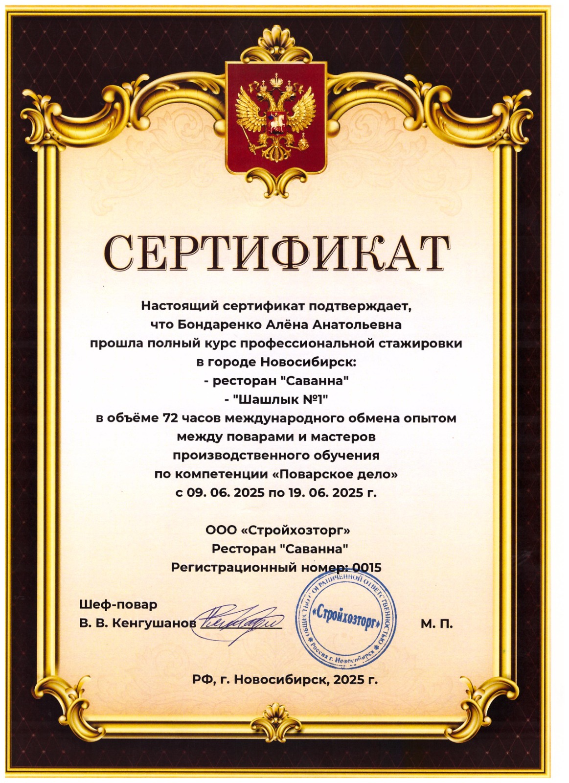 Мастера производственного обучения А. Бондаренко и А. О. Досбаева с 09.06.2025 г. по 19.06.2025 г. завершили полный курс профессиональной стажировки в г. Новосибирске Российской Федерации.