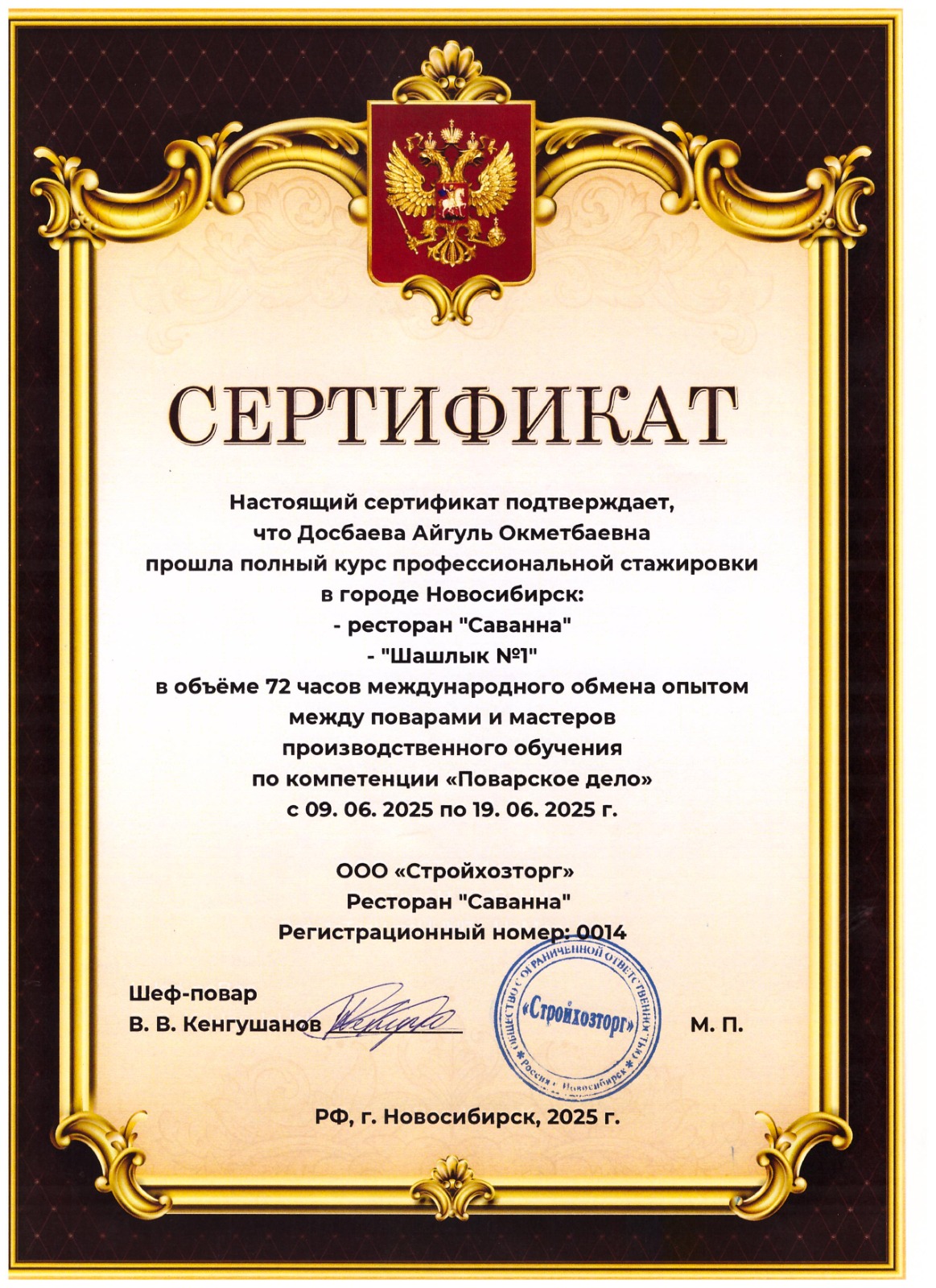 Мастера производственного обучения А. Бондаренко и А. О. Досбаева с 09.06.2025 г. по 19.06.2025 г. завершили полный курс профессиональной стажировки в г. Новосибирске Российской Федерации.